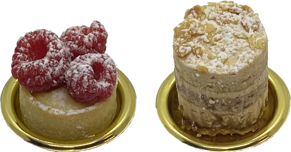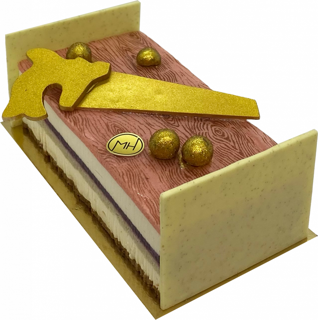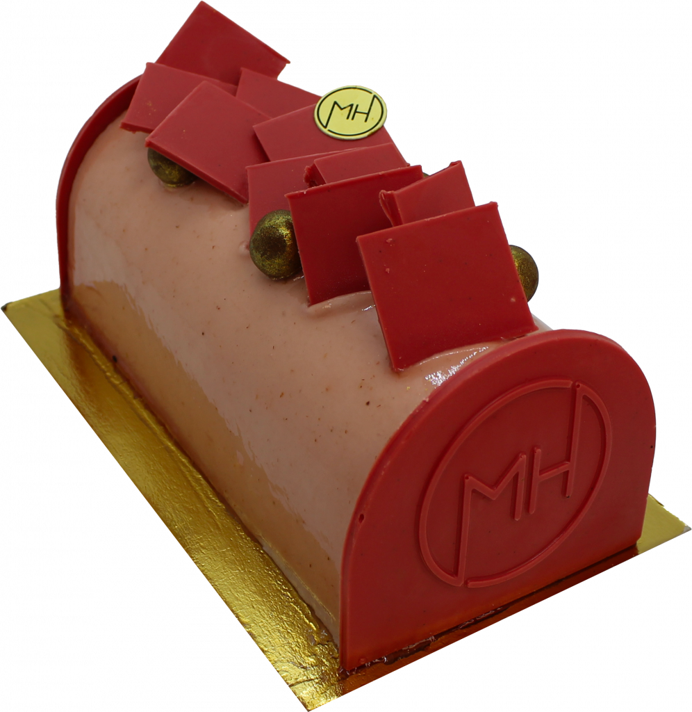 Ce dessert débute par un biscuit financier aux fruits rouges, à la fois tendre et légèrement acidulé. Il est recouvert d’une mousse douce et onctueuse à la vanille et au chocolat blanc, qui apporte une touche de gourmandise. Une gelée de framboise vient ajouter une note fraîche et fruitée, tandis qu’un crémeux à la fraise complète l’ensemble avec sa saveur intense.