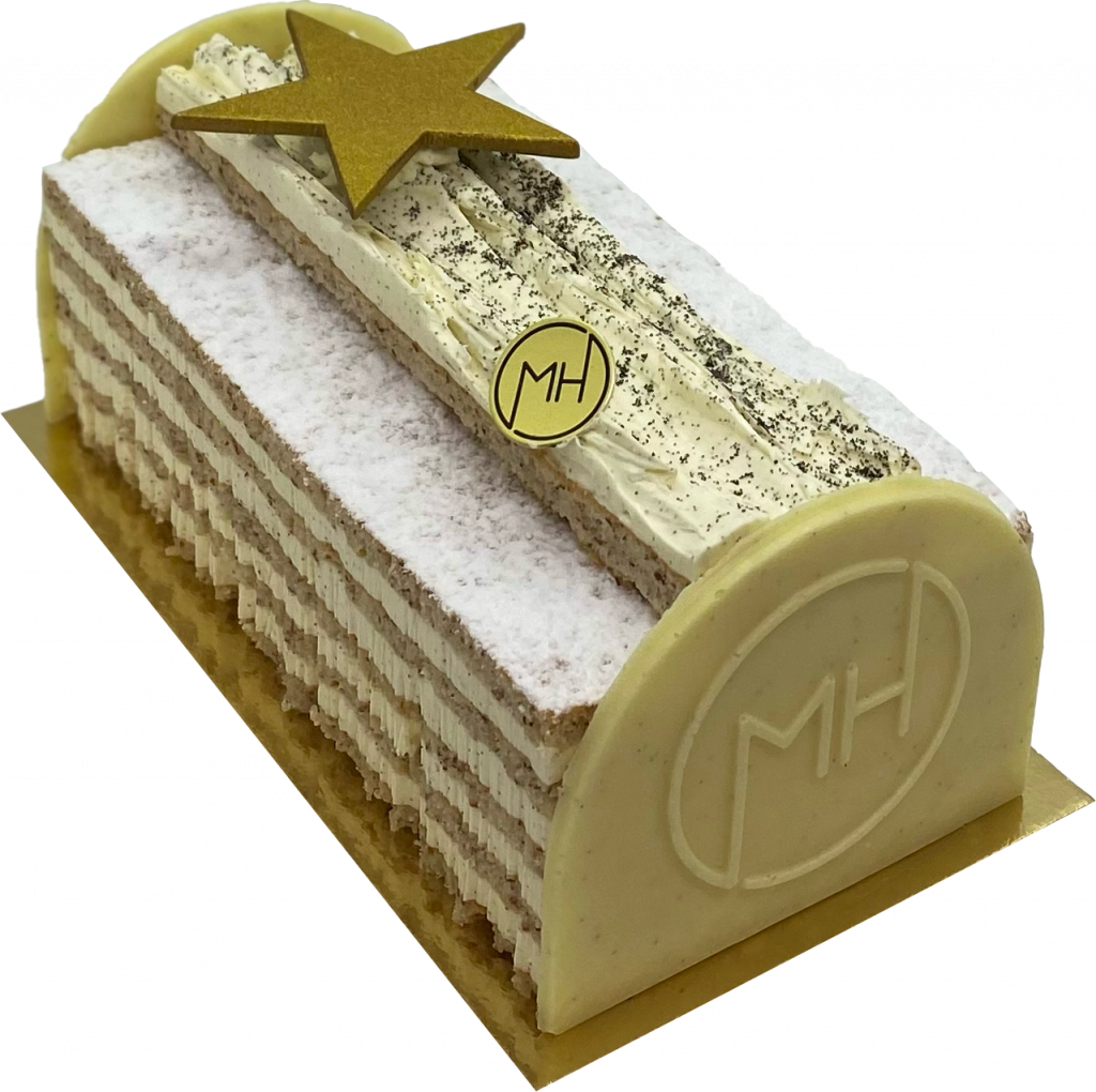 Cette bûche classique associe une dacquoise moelleuse aux amandes et une crème au beurre onctueuse, disponible en trois saveurs irrésistibles. En version vanille, elle offre une douceur délicate et parfumée, idéale pour les amateurs de simplicité. La déclinaison praliné apporte une touche de noisette et de caramel, parfaite pour les gourmands. Enfin, la version au Grand Marnier allie la richesse de la crème au beurre avec une pointe d’orange, pour une note festive et légèrement alcoolisée.
